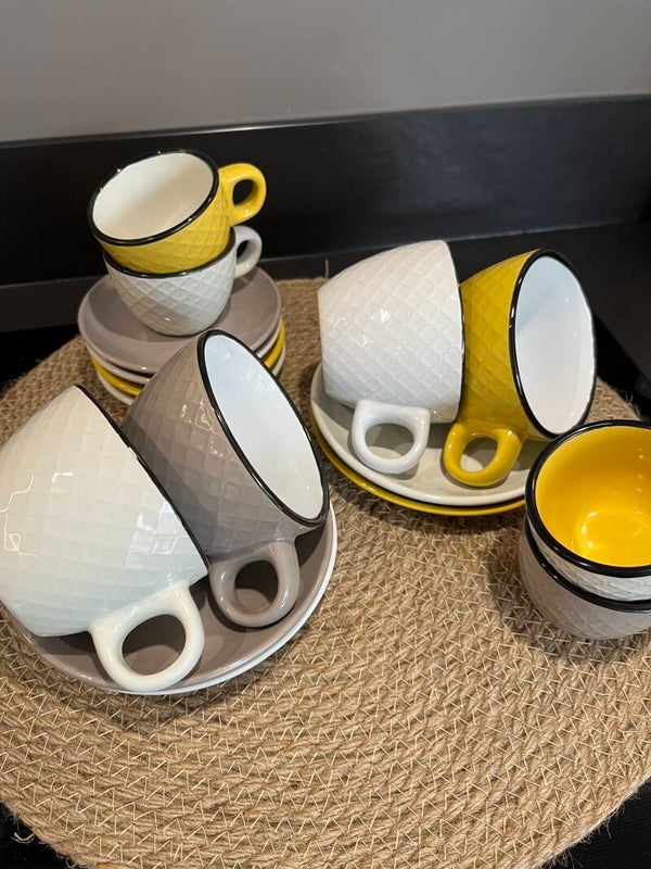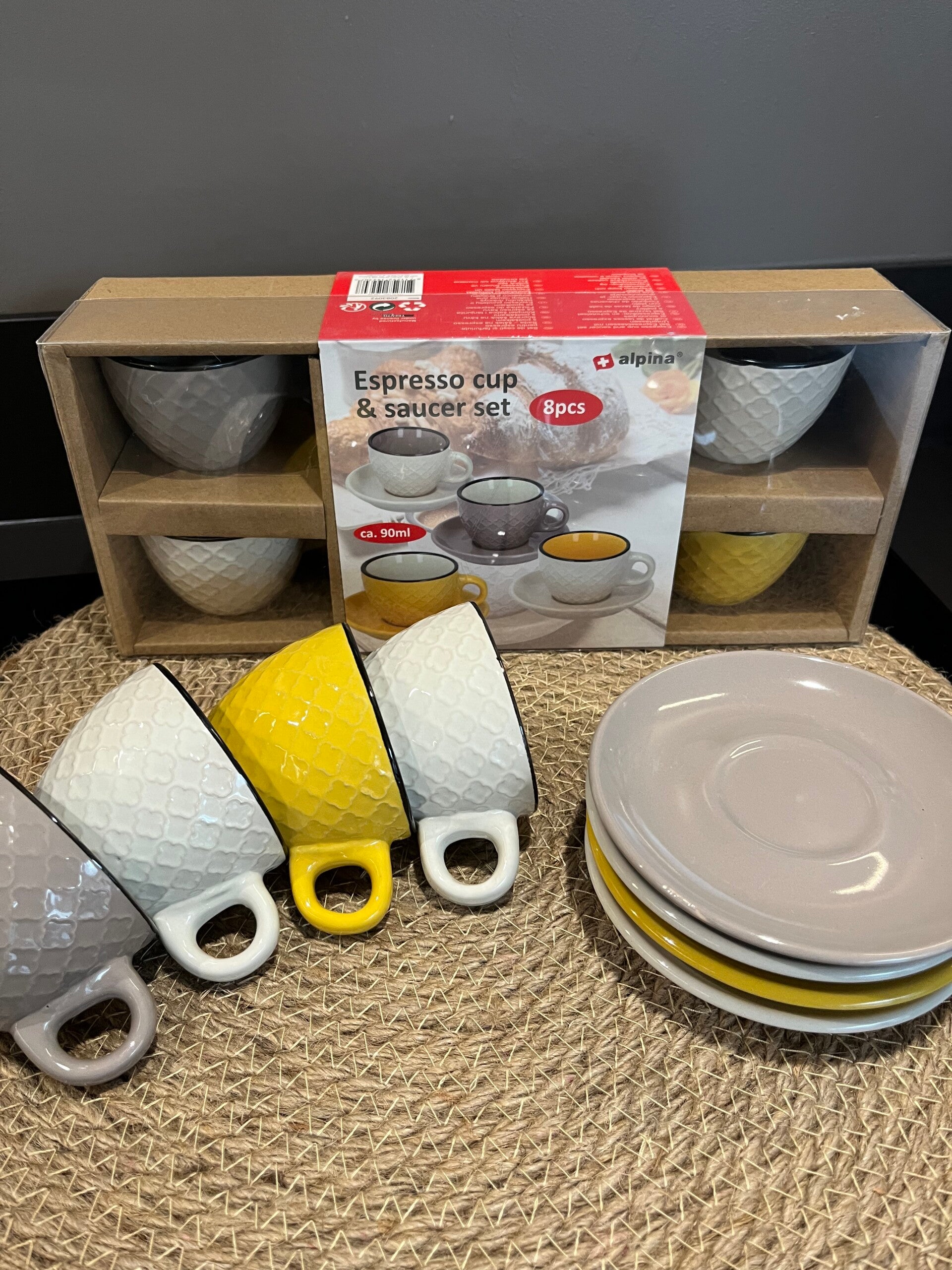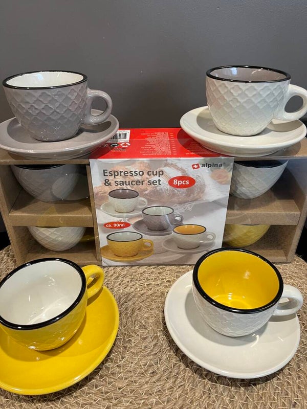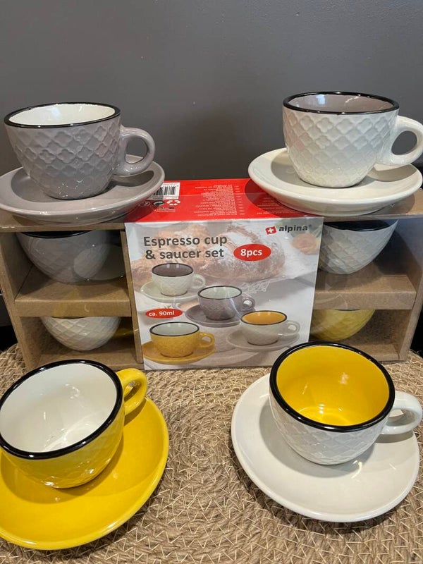 Espresso mokjes/cups en schotel. deze set bestaat uit 4 mokjes en 4 schoteltjes. de inhoud van de kopjes is 90 ml