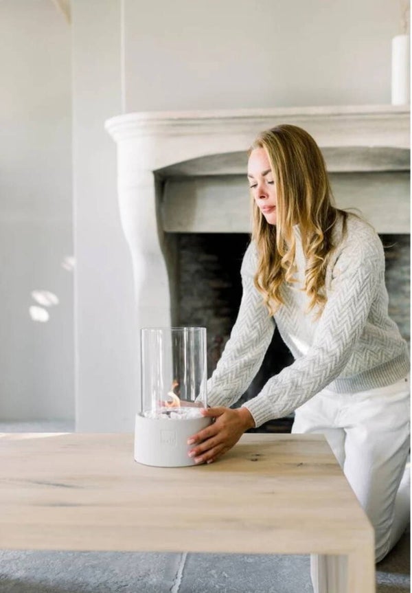 Kies je voor sfeer, kies dan deze prachtige Stonefire tafelhaard met witte voet van Leeff. Dan zet je een echte eyecatcher op tafel.