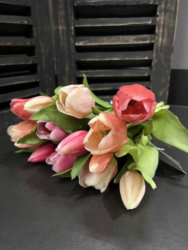 Tulpen real touch Roze/Pink gemengd. Er zitten 7 tulpen in een bos. Op de foto staan 2 bossen afgebeeld.