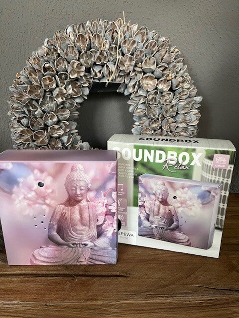 Soundbox met relaxing geluid. Deze soundbox werkt op 3 AA batterijen, dus je bent niet afhankelijk van stroom. Hierdoor kun je de box overal plaatsen. Deze box is perfect op het toilet, badkamer, hal. kantoor of woonkamer. Het volume kun je harder of zachter zetten. Er zit een bewegingsmelder in.