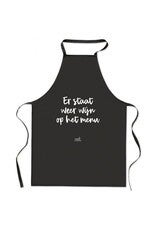 Zoedt schort met tekst "Er staat weer wijn op het menu"