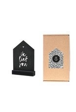 Op zoek naar een leuk cadeautje om te bedanken, hart onder de riem te steken of zomaar iemand te verrassen? Dit leuke houten huisje met hartje is een super leuk woonaccessoires om te geven. De kaart heeft de vorm van een huisje, de tekst in de kaart is uitgesneden. Het huisje wordt geleverd met een zwarte MDF-standaard.
