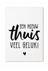 Leuke zwart wit minikaartje met tekst een nieuw thuis! De achterkant van de kaart is blanco en kun je een persoonlijk boodschap schrijven. Leuk om bij een cadeautje of bos bloemen te doen. Het formaat van het kaartje is 50x73mm gedrukt op 300grams sulfaatkarton.