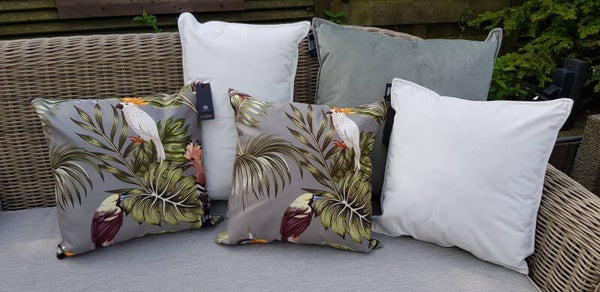 Mooi velours sierkussen van het merk Overseas in de kleur soft green met vogels in vrolijk dessin. Het kussen is gemaakt van 100% polyester en heeft een ritssluiting. Je kunt dit kussen het best op de hand wassen op 30 graden. Leuk te combineren met de andere kussens op onze site.