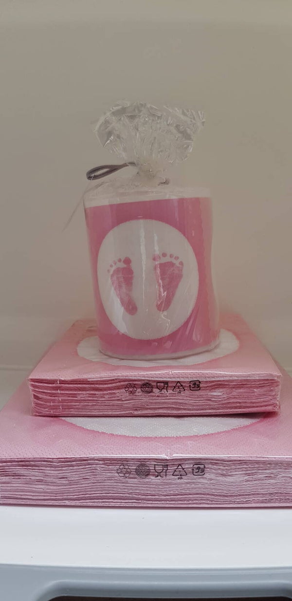 Servetten van Ambiente met roze voetjes. Leuk voor een babyshower, bekendmaking geslacht, geboorte.