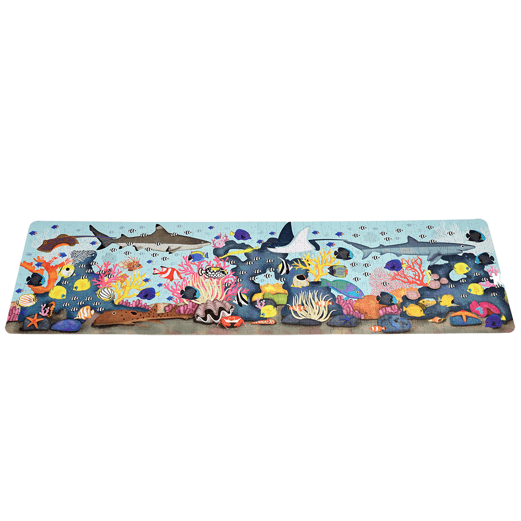 Prachtige en kleurrijke langwerpige puzzel van Rex London. Duik in de wereld van de zee/koraalrif. Kinderen zullen dol zijn op deze puzzel voor urenlang speelplezier. In de doos zit een informatieblad over de vissen die in verschillende koraalriffen van de hele wereld leven. De puzzel bestaat uit 500 stukjes.