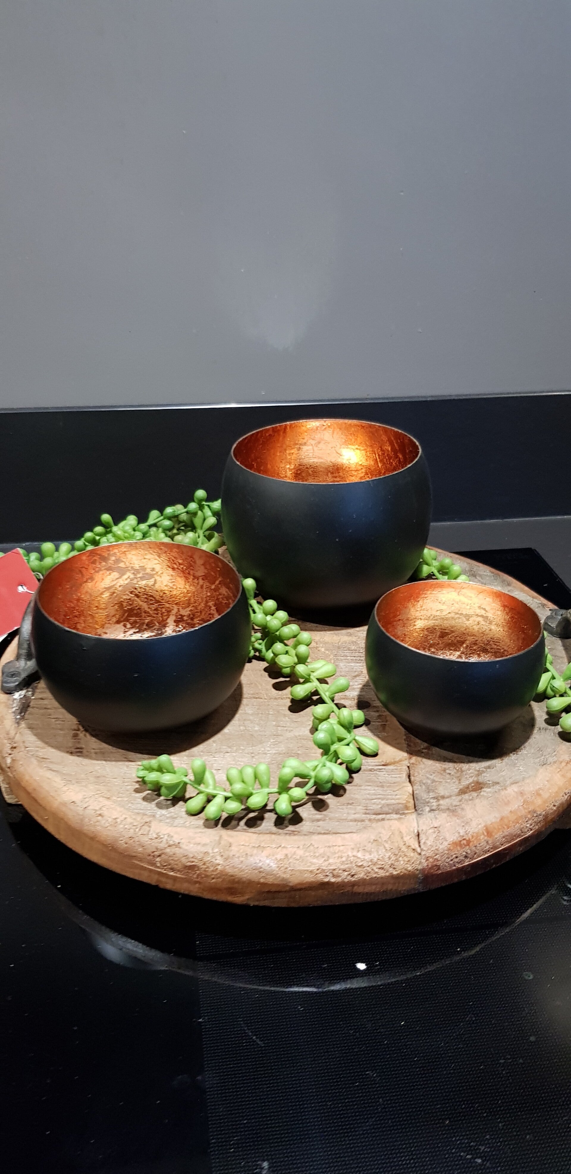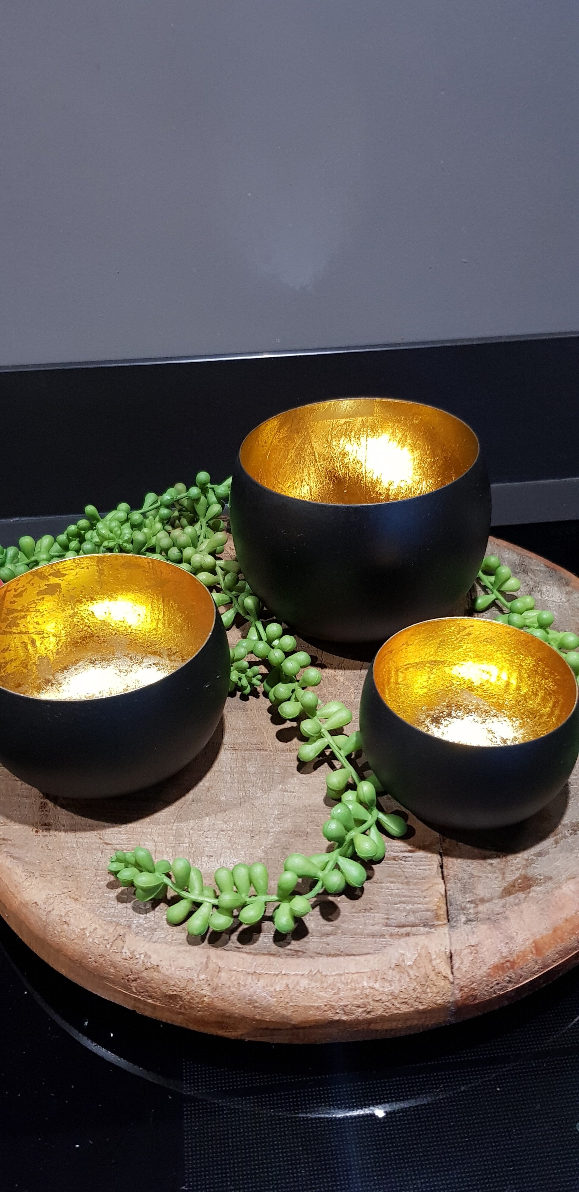 Afmeting: Doorsnee 11 cm en hoogte 8 cm, doorsnee 10 cm en hoogte 6 cm, doorsnee 8 cm en hoogte 5 cm.