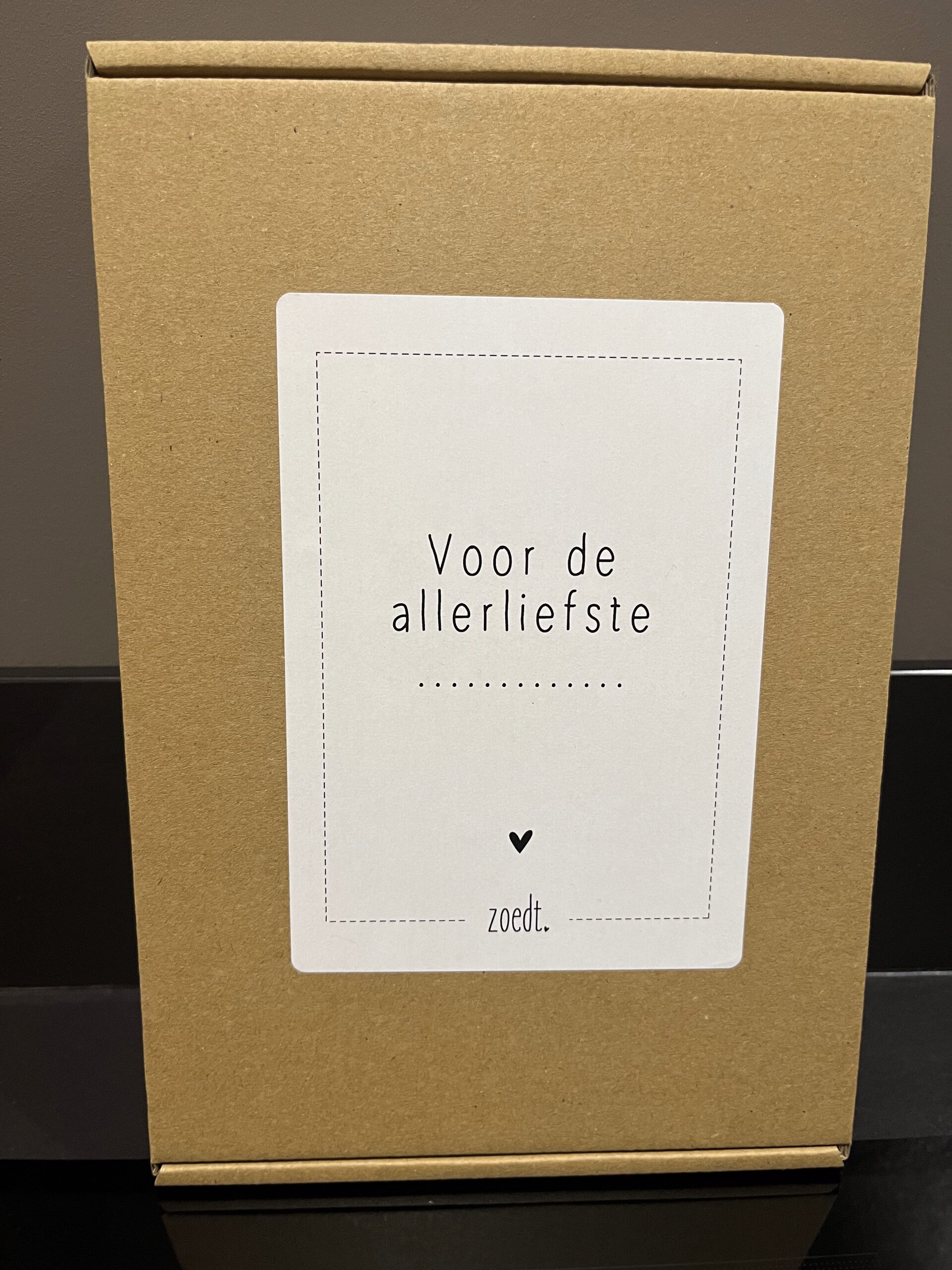 Zoedt schort met tekst "van jou wil ik er nog wel eentje" in cadeauverpakking